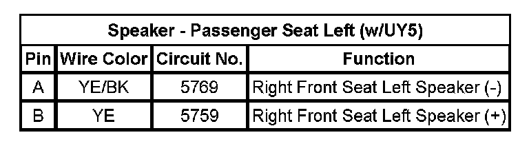 Speaker - Passenger Seat Left (w/UY5)