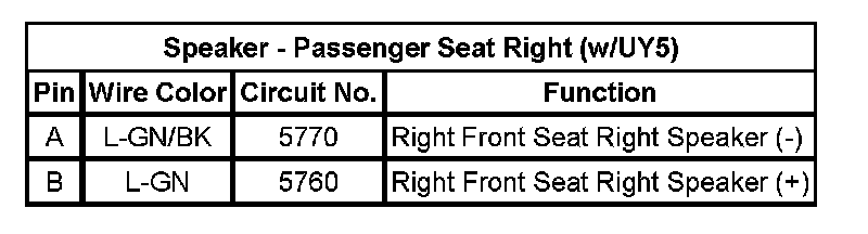 Speaker - Passenger Seat Right (w/UY5)