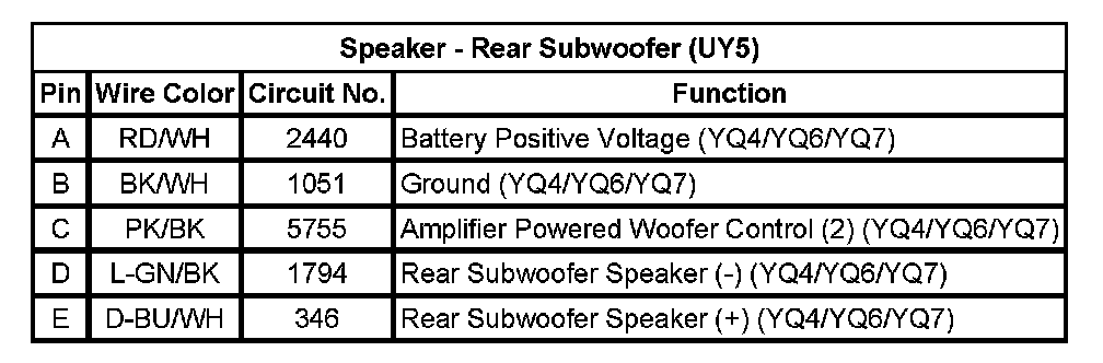 Speaker - Rear Subwoofer (UY5)