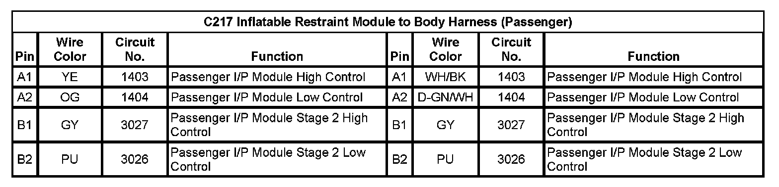 C217 Inflatable Restraint Module to Body Harness (Passenger)
