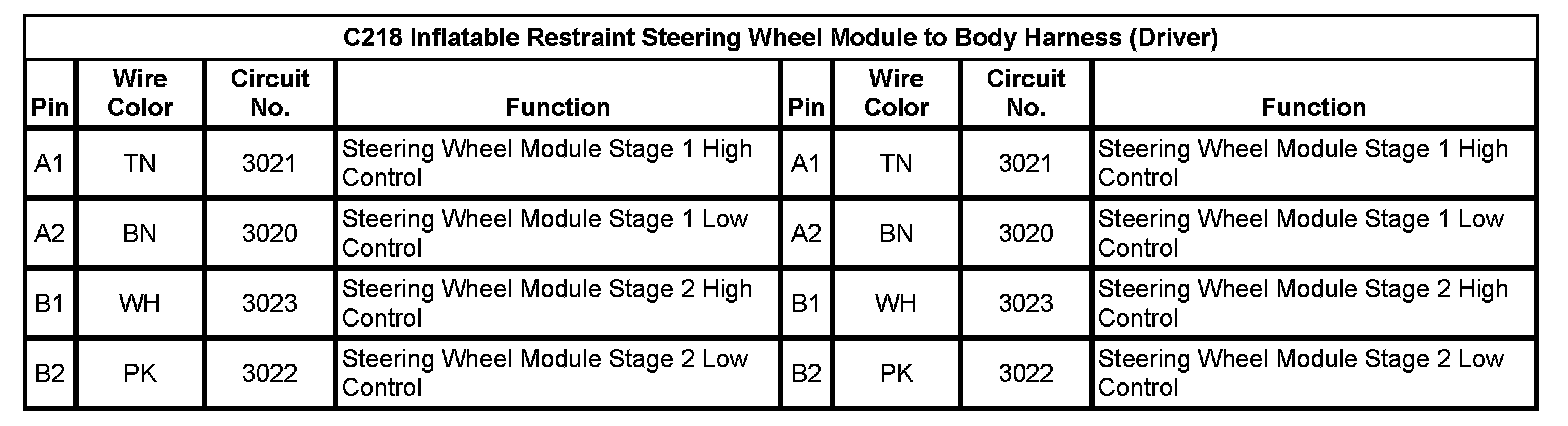 C218 Inflatable Restraint Steering Wheel Module to Body Harness (Driver)