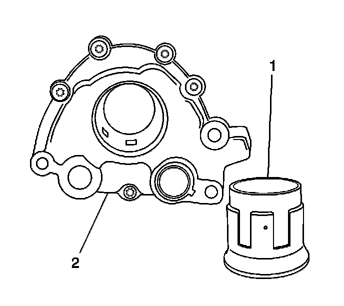 3. Install the oil pump drive spacer (1) into the oil pump (2) so that the drive flat engages the pump rotor.