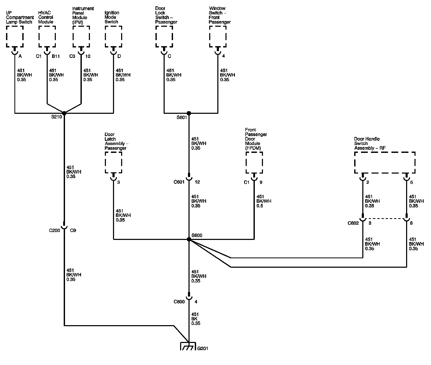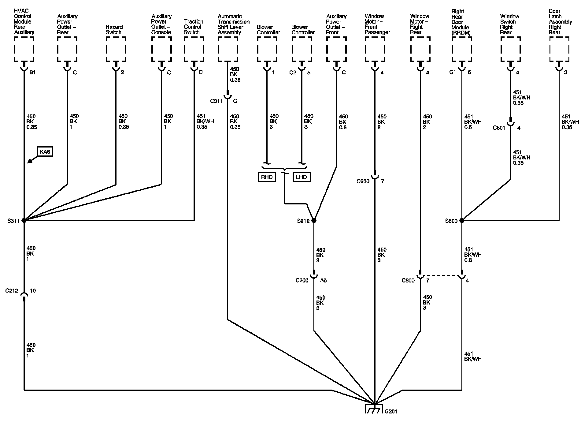 The locations for the Connectors, Grounds, Splices, and Grommets shown within these diagrams can be found via their numbers at Vehicle Locations.