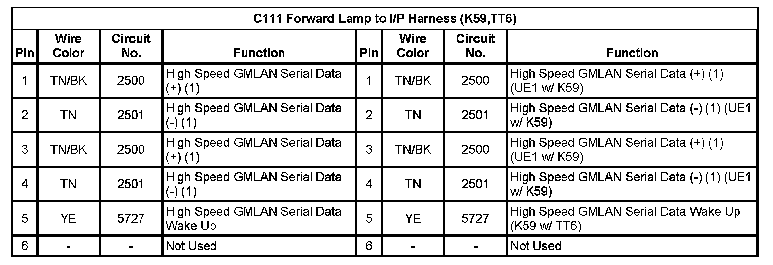 C111 Forward Lamp to I/P Harness (K59,TT6 w/o LC3)