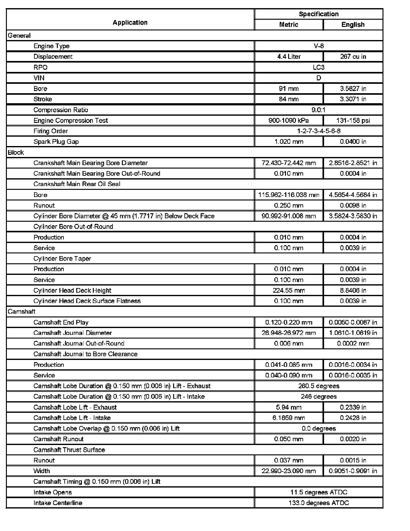 Engine Mechanical Specifications (Part 3):