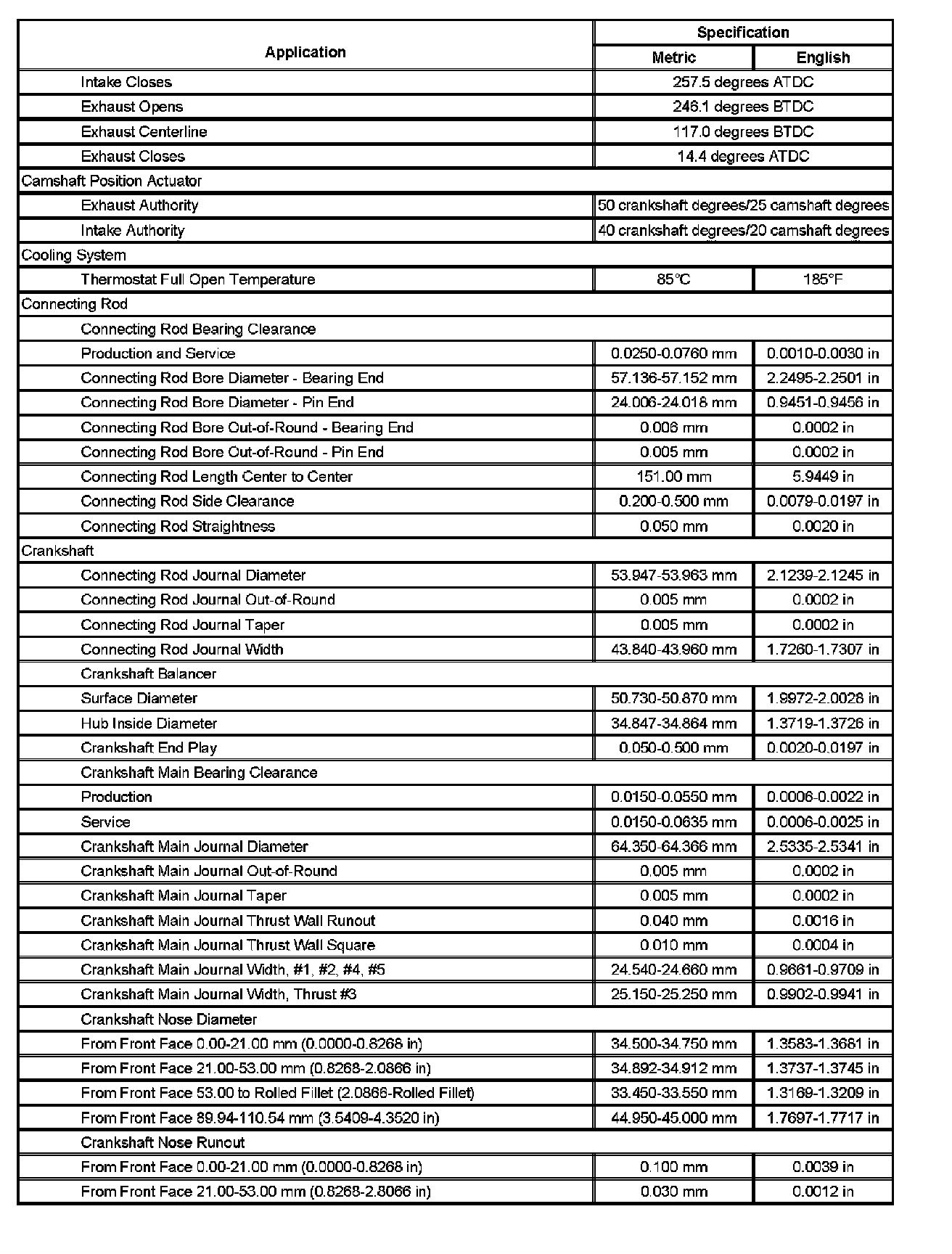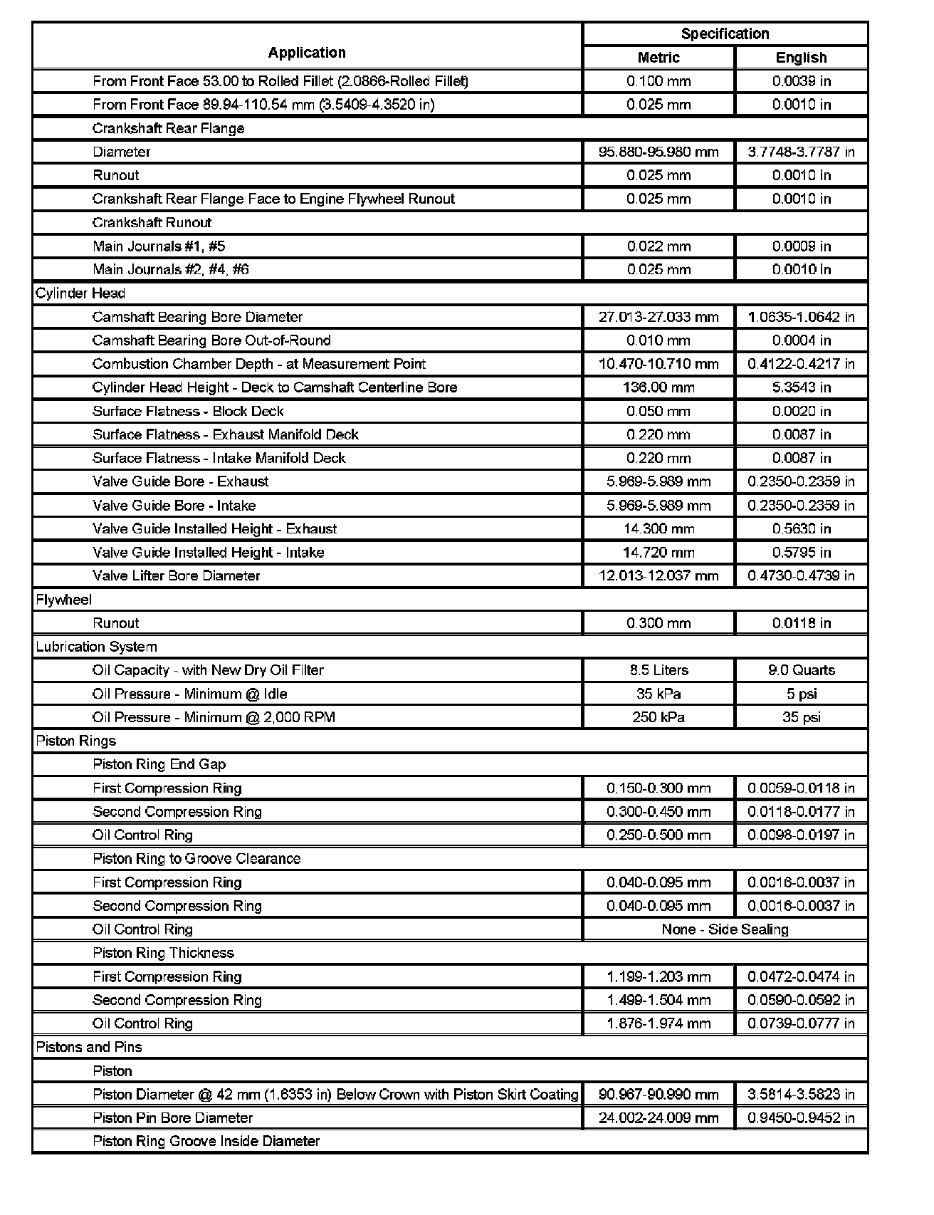 Engine Mechanical Specifications (Part 5):
