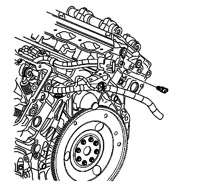 16. Connect the knock and crankshaft position sensor wiring harness to the knock sensors and crankshaft position sensor.