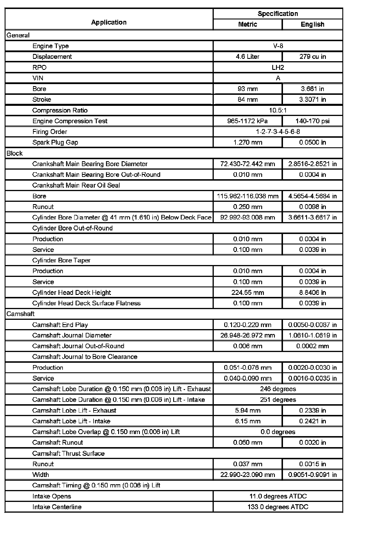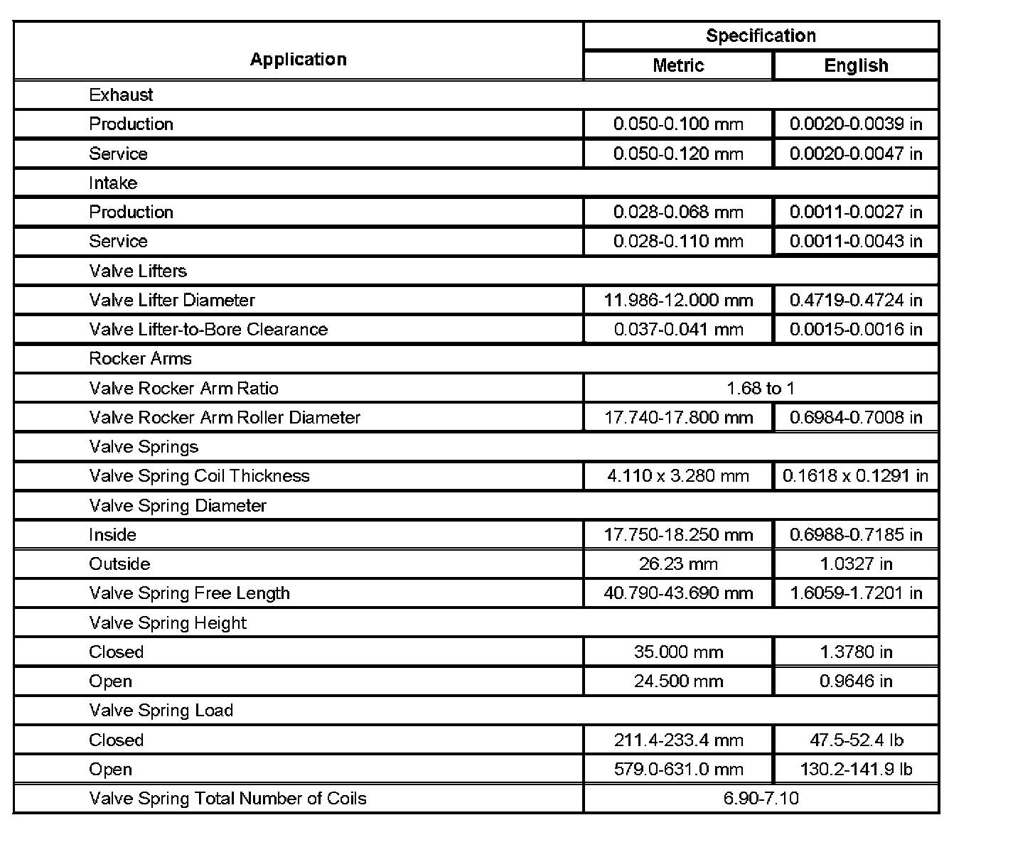 Engine Mechanical Specifications