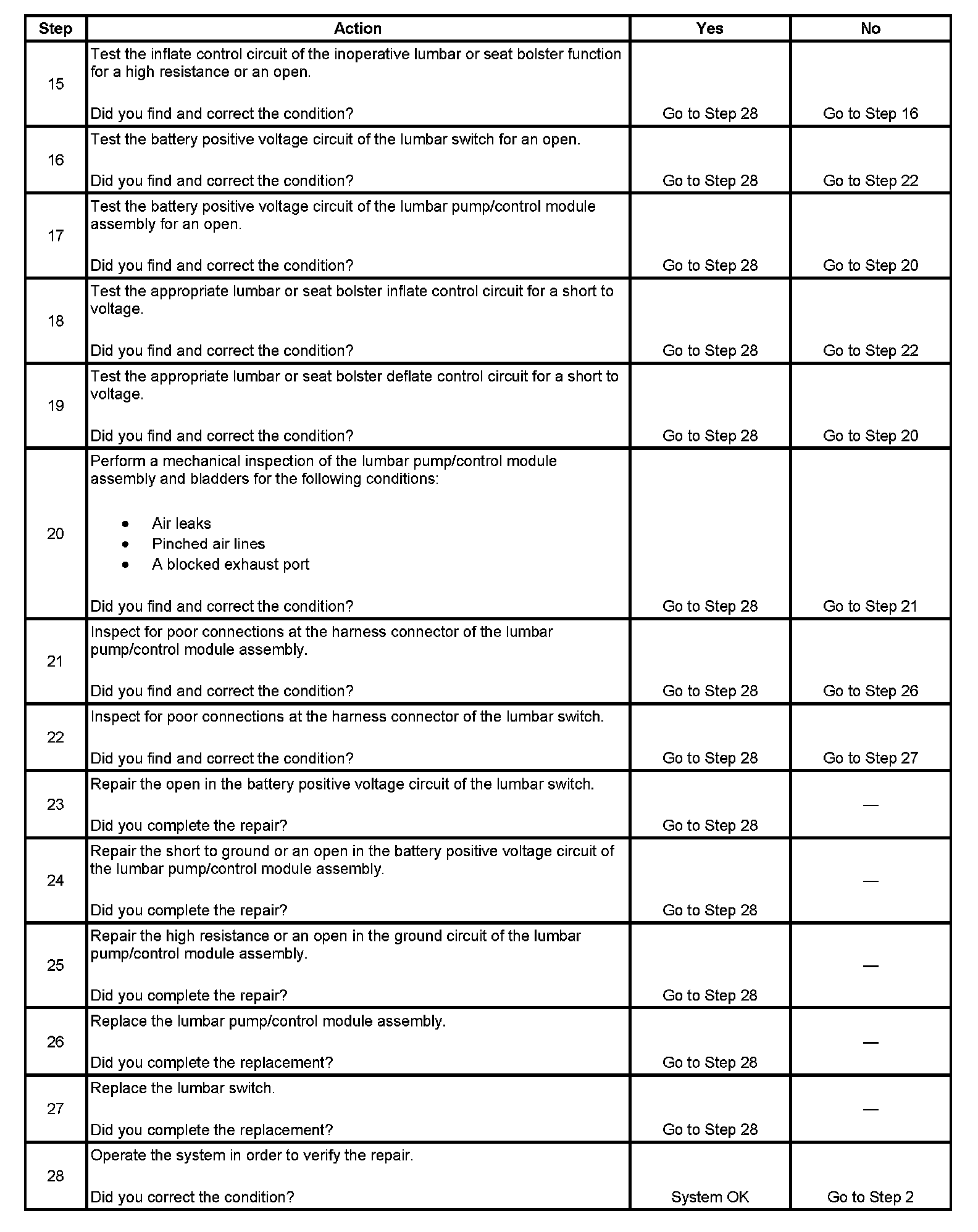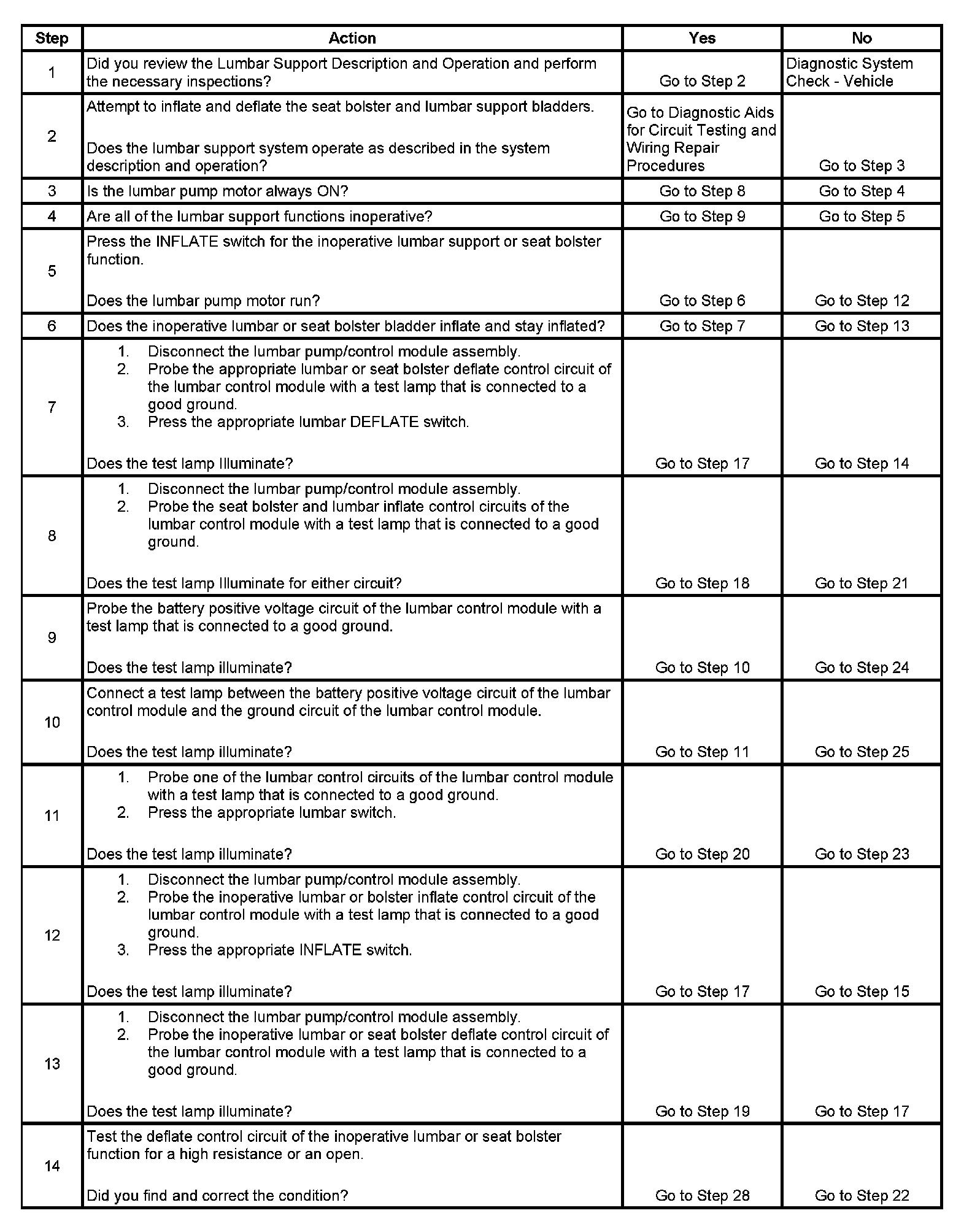 LUMBAR SUPPORT INOPERATIVE
