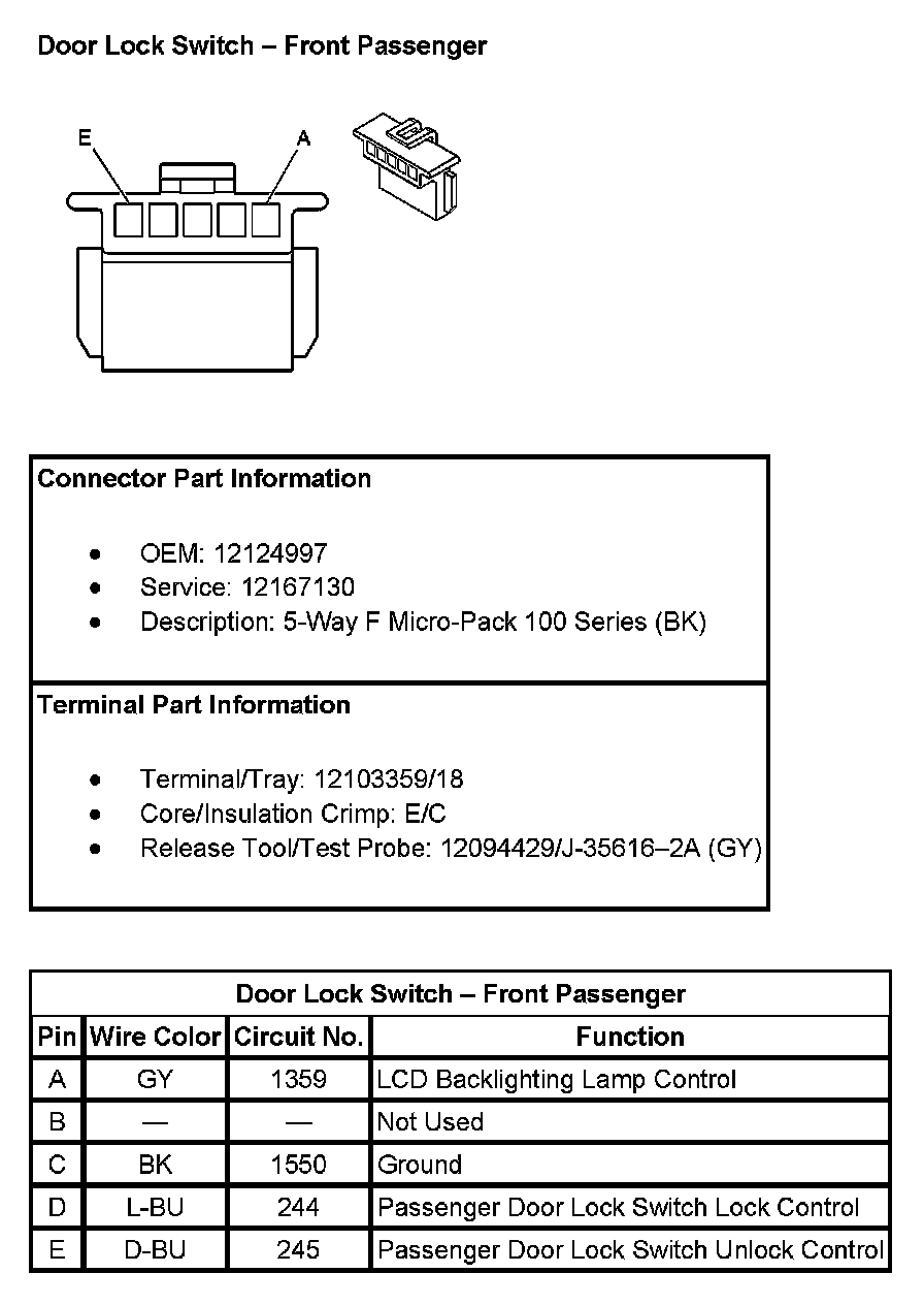 Door Lock Switch - Front Passenger: