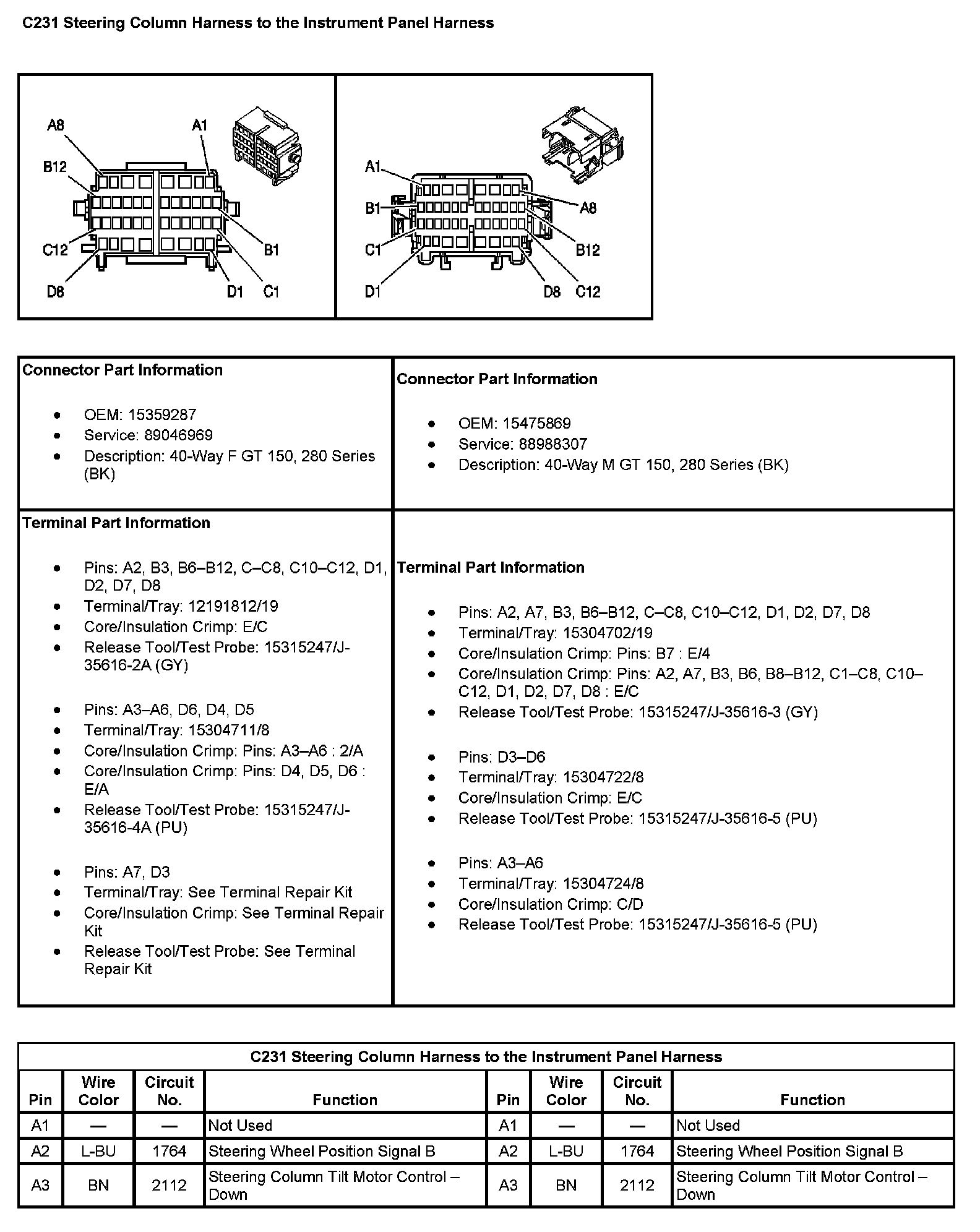 C231 Steering Column Harness to the Instrument Panel Harness (Pin A1 To A3):