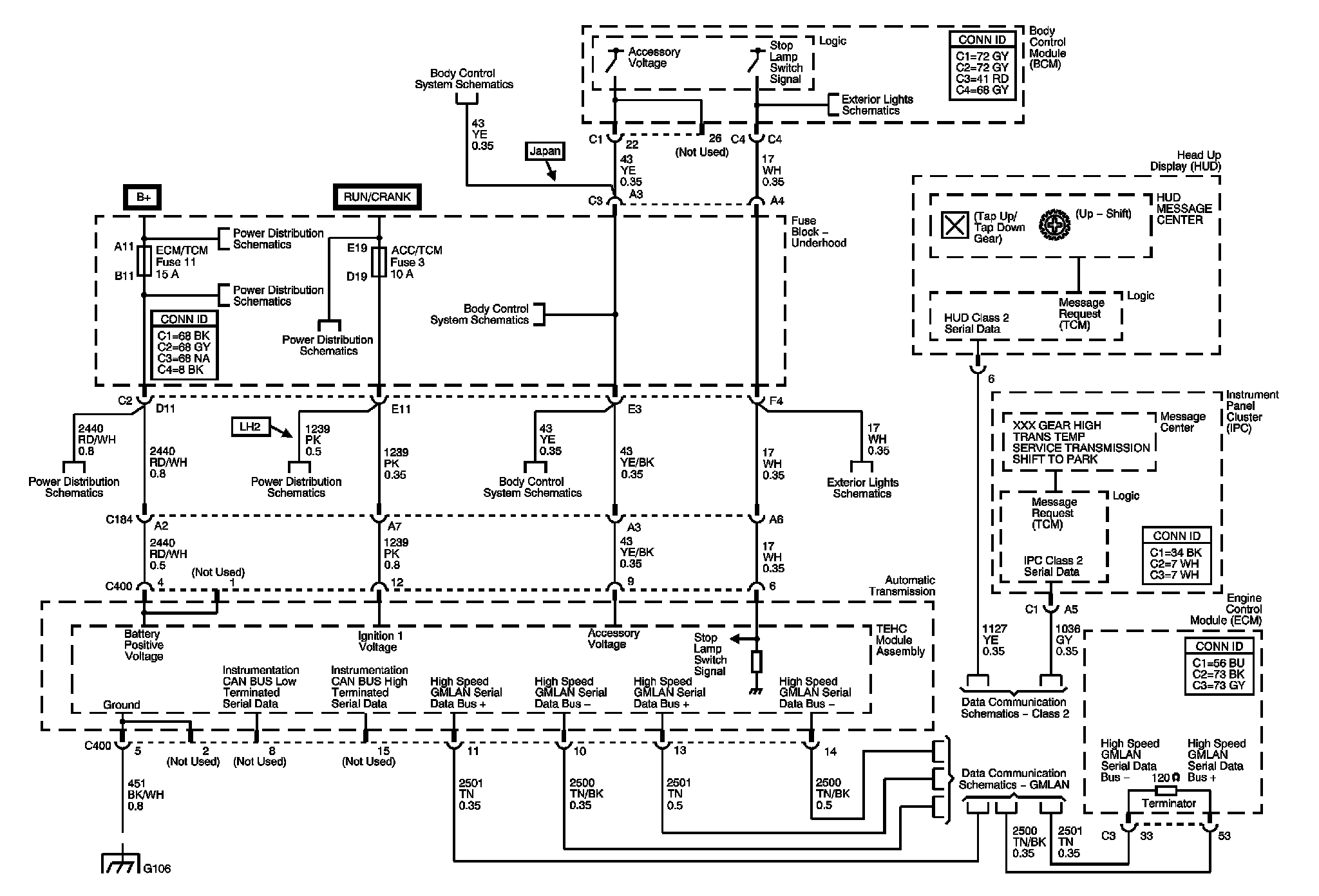 Locations: The locations for the Connectors, Grounds, Splices, and Grommets shown within these diagrams can be found via their numbers at Vehicle Locations. Locations