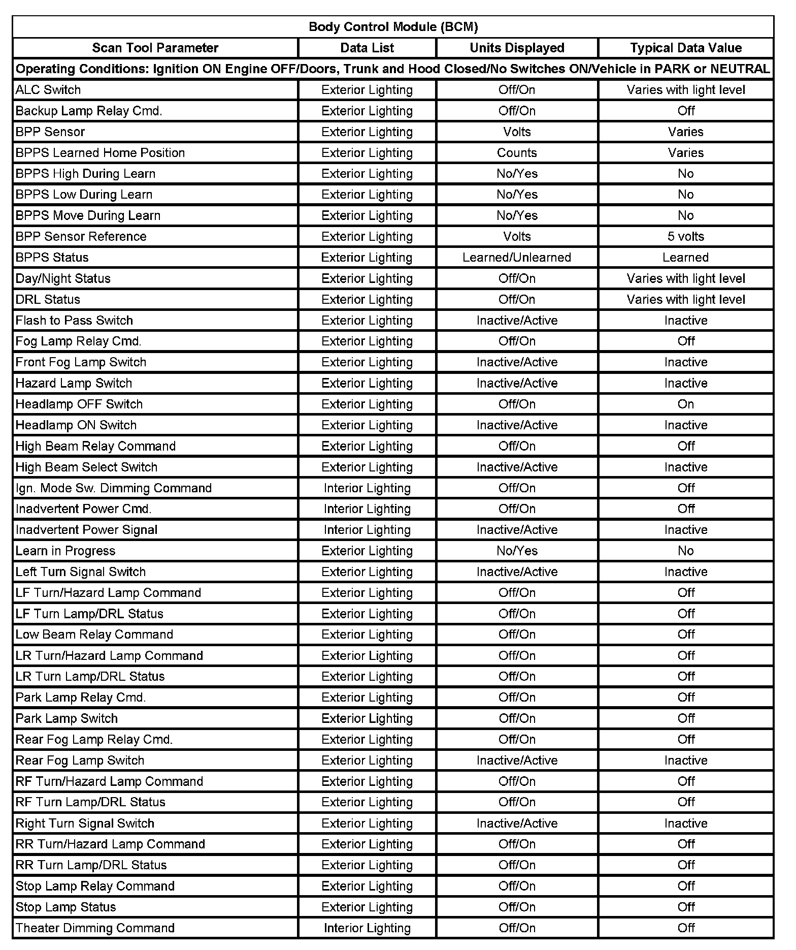 Body Control Module (BCM):