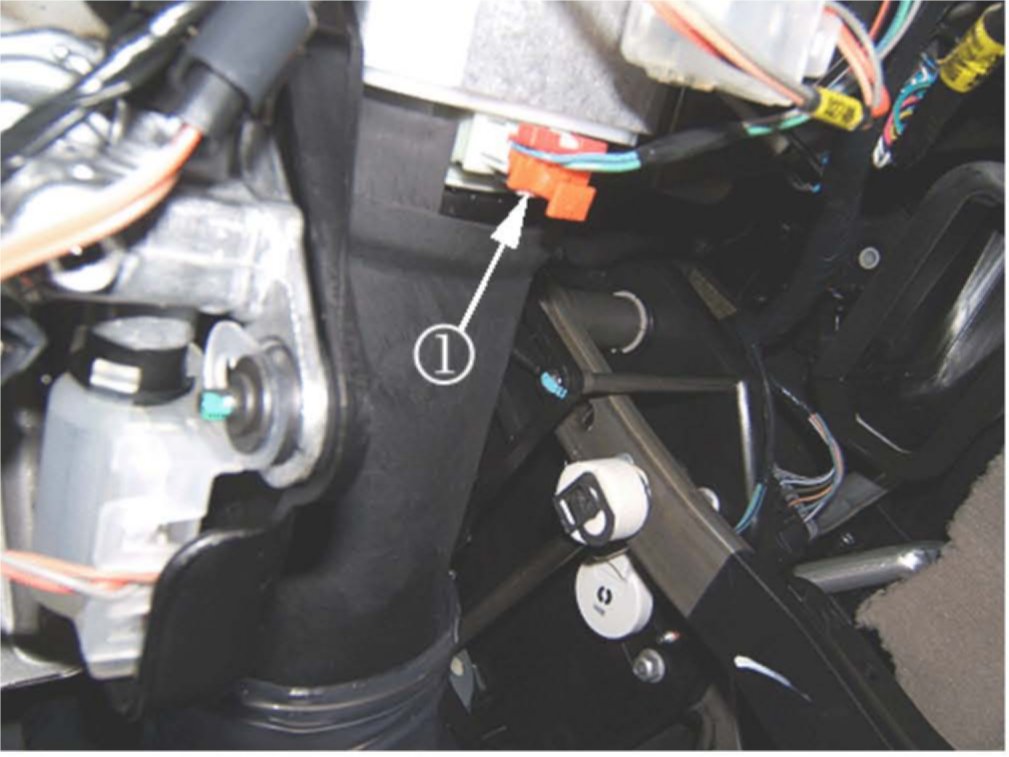 Locate the SWPS connector that connects to the steering angle sensor, located on the lower center of the steering column.