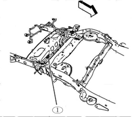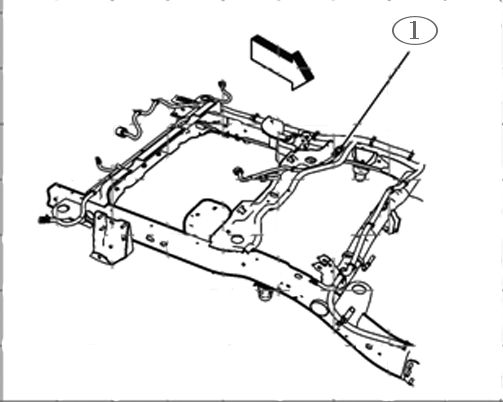 4. Inspect the wiring harness leading to the rear data link resistor 1, between the truck box and frame for chafed, damaged, pinched, open or shorted wiring as shown.