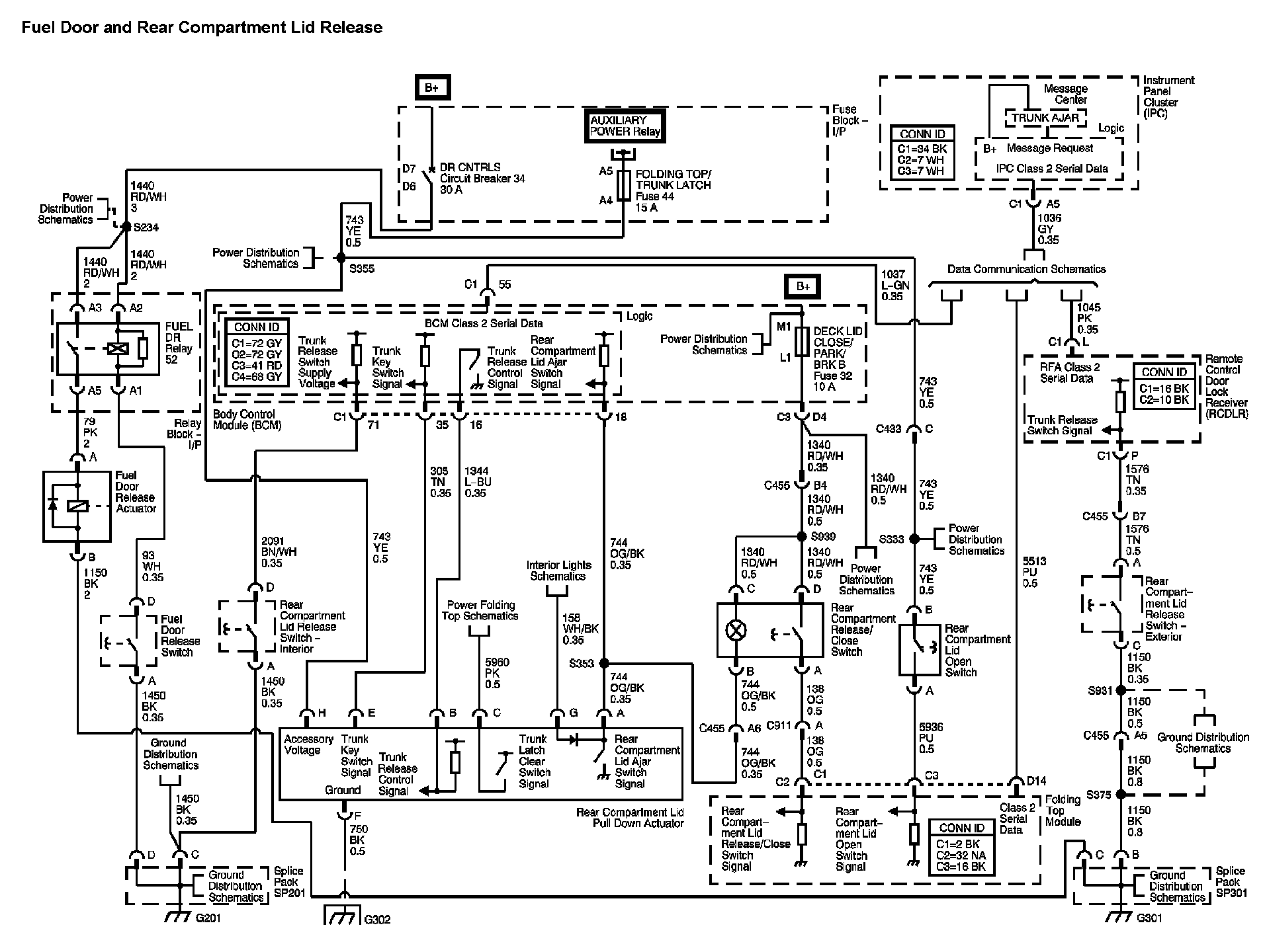 The locations for the Connectors, Grounds, Splices, and Grommets shown within these diagrams can be found via their numbers at Vehicle Locations