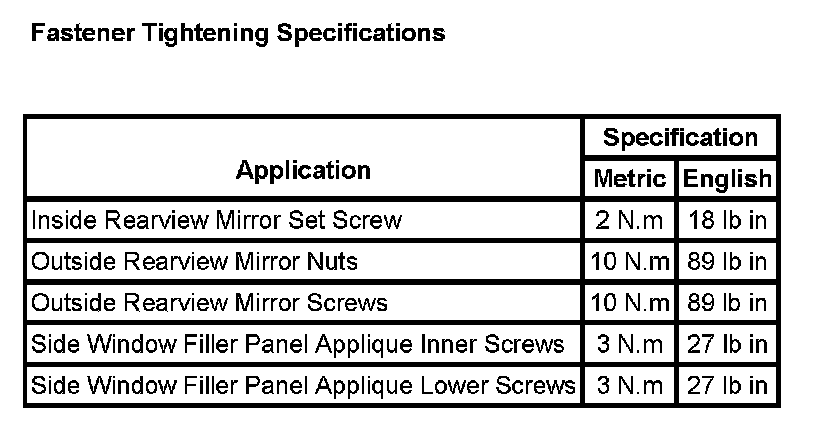 Fastener Tightening Specifications: