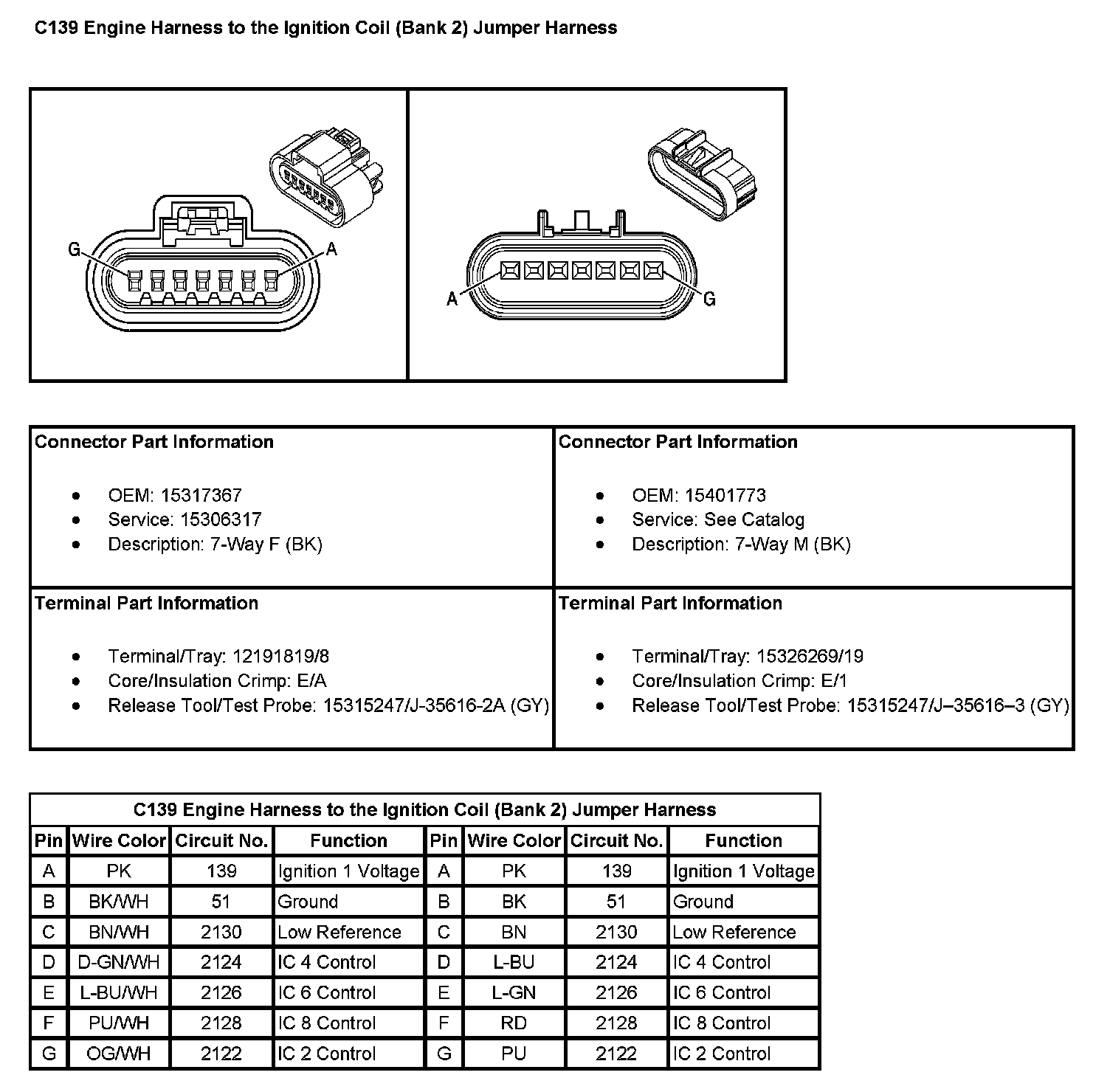 C139 Engine Harness to the Ignition Coil (Bank 2) Jumper Harness: