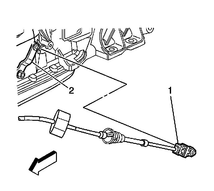 57. Disconnect the transmission shift control cable from the transmission shift lever. Unsnap to release the cable.