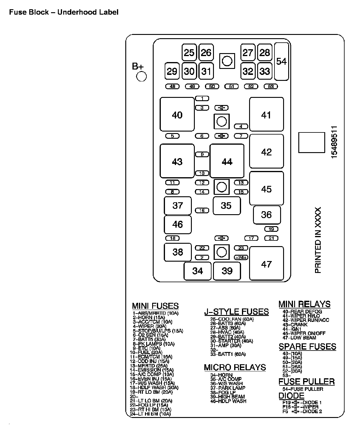 Fuse Block - Underhood Label: