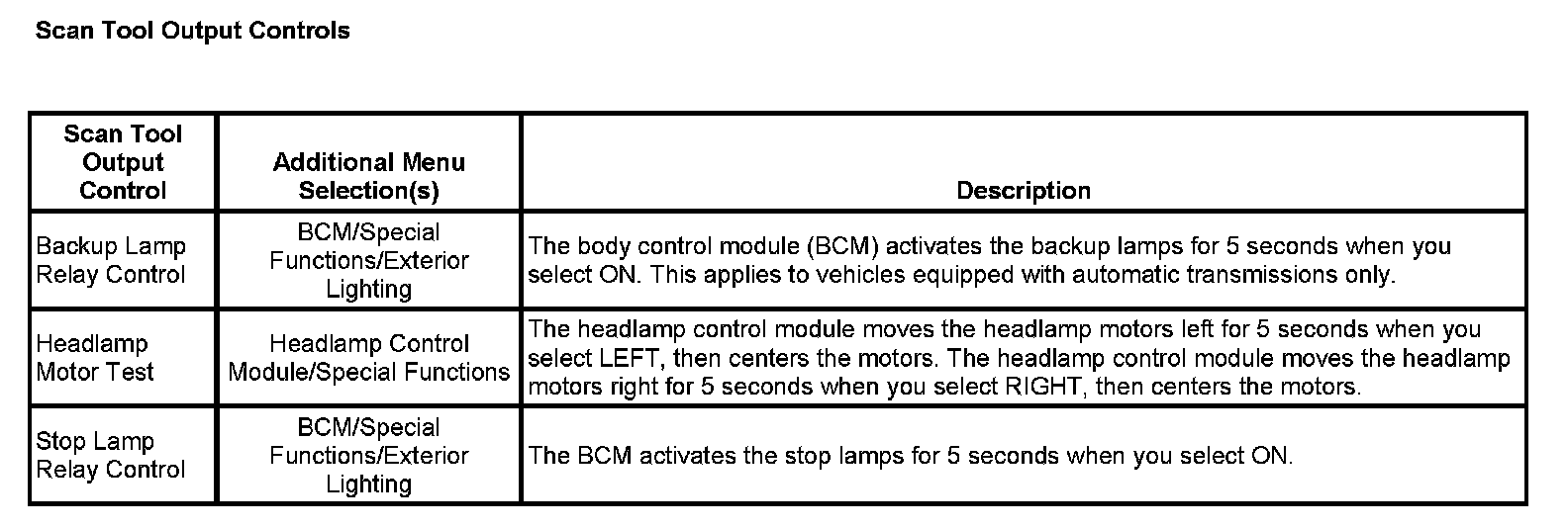 Scan Tool Output Controls: