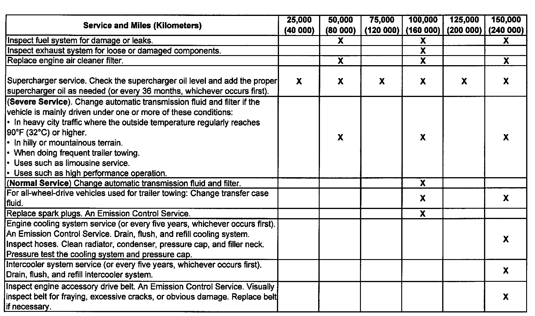 service (I or II) after the indicated miles (kilometers) shown for each item.