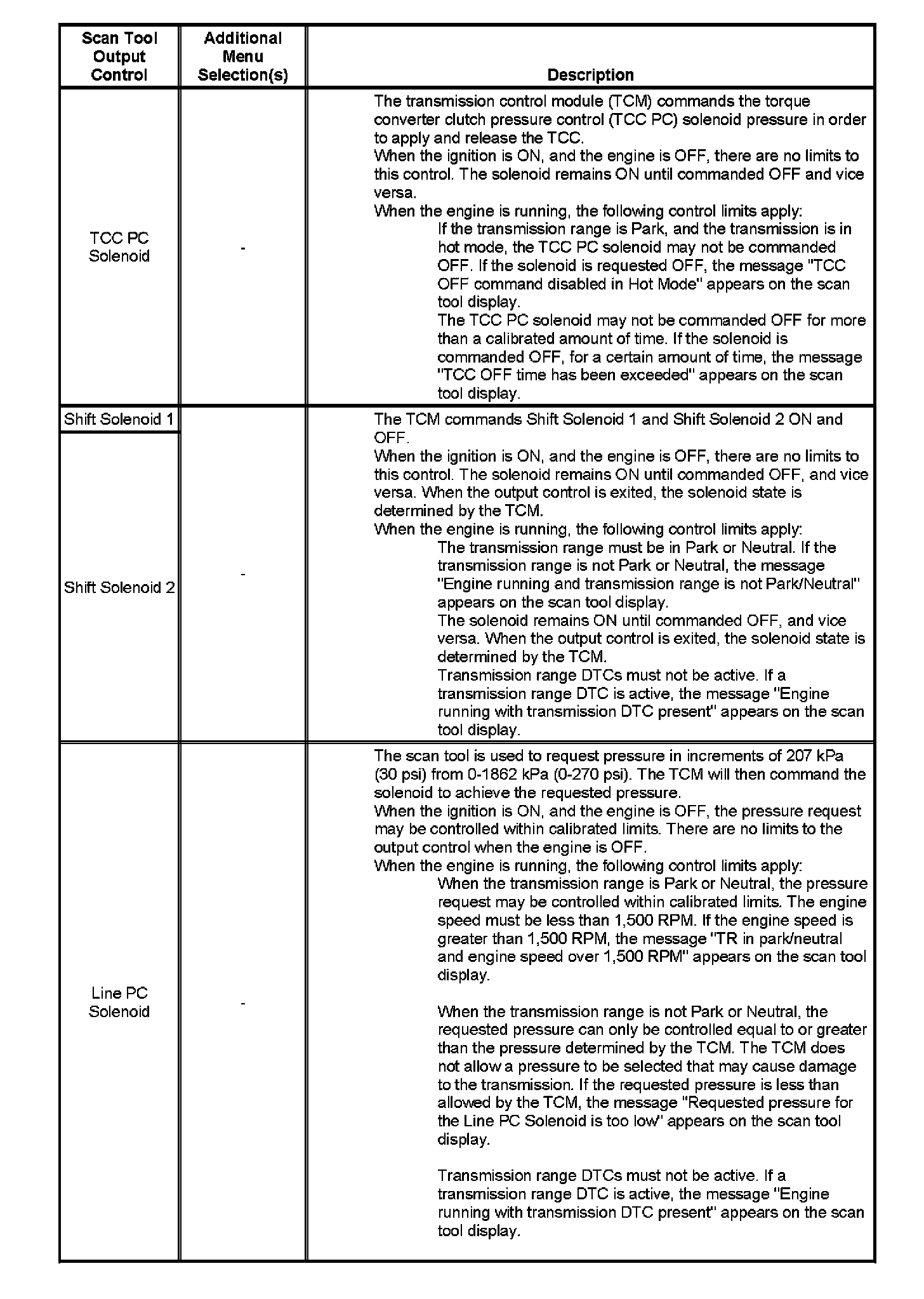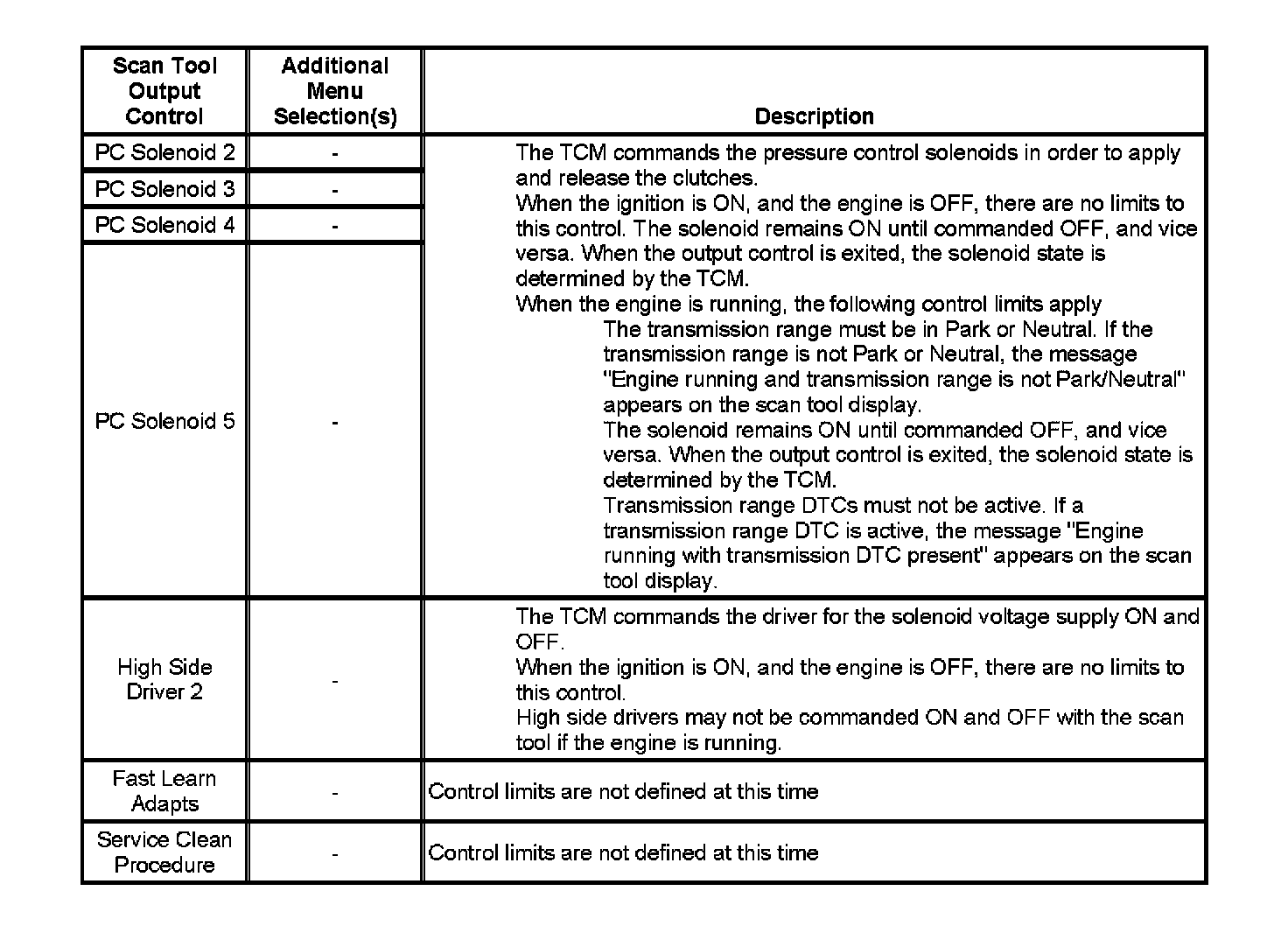 Scan Tool Output Controls