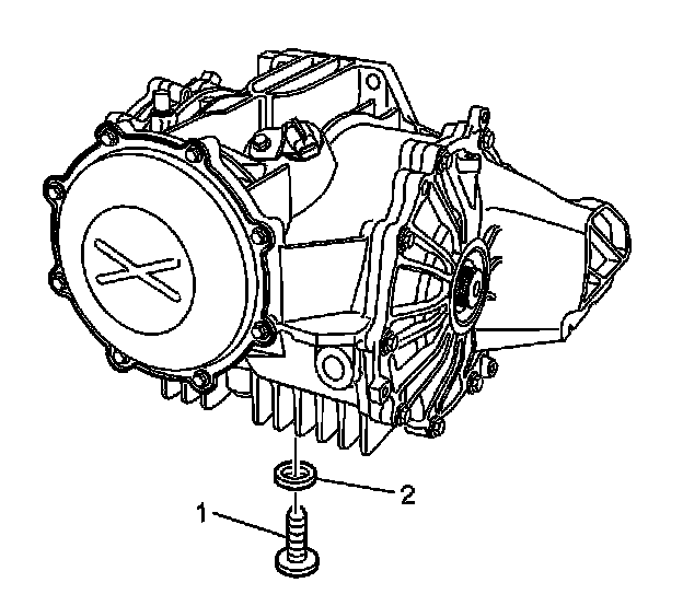 3. If not equipped with a differential cooler, remove the drain plug (1) and washer (2) from the differential.