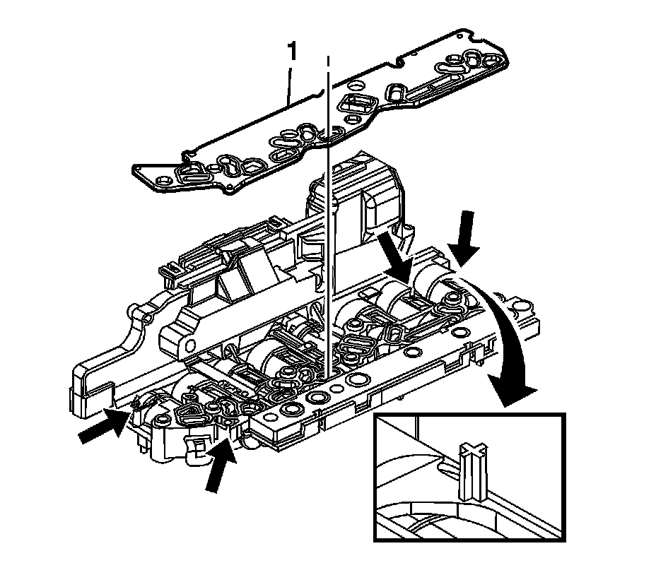 Notice: Use care when removing or installing the filter plate assembly. A broken or missing retaining tab may not adequately secure the filter plate to the control solenoid valve assembly, resulting in possible damage or contamination.