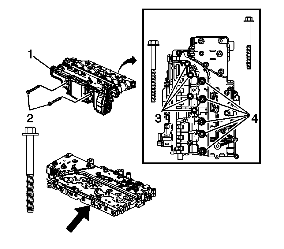 3. Remove the valve body bolts (1).