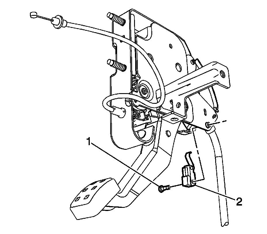 1. Assemble the parking brake indicator switch bolt (1) to the parking brake indicator switch (2).