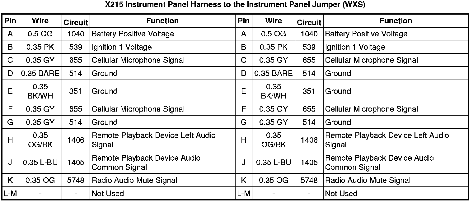 X215 Instrument Panel Harness to the Instrument Panel Jumper (WXS)
