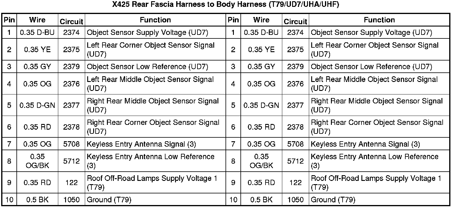 X425 Rear Fascia Harness to Body Harness (T79/UD7/UHA/UHF)