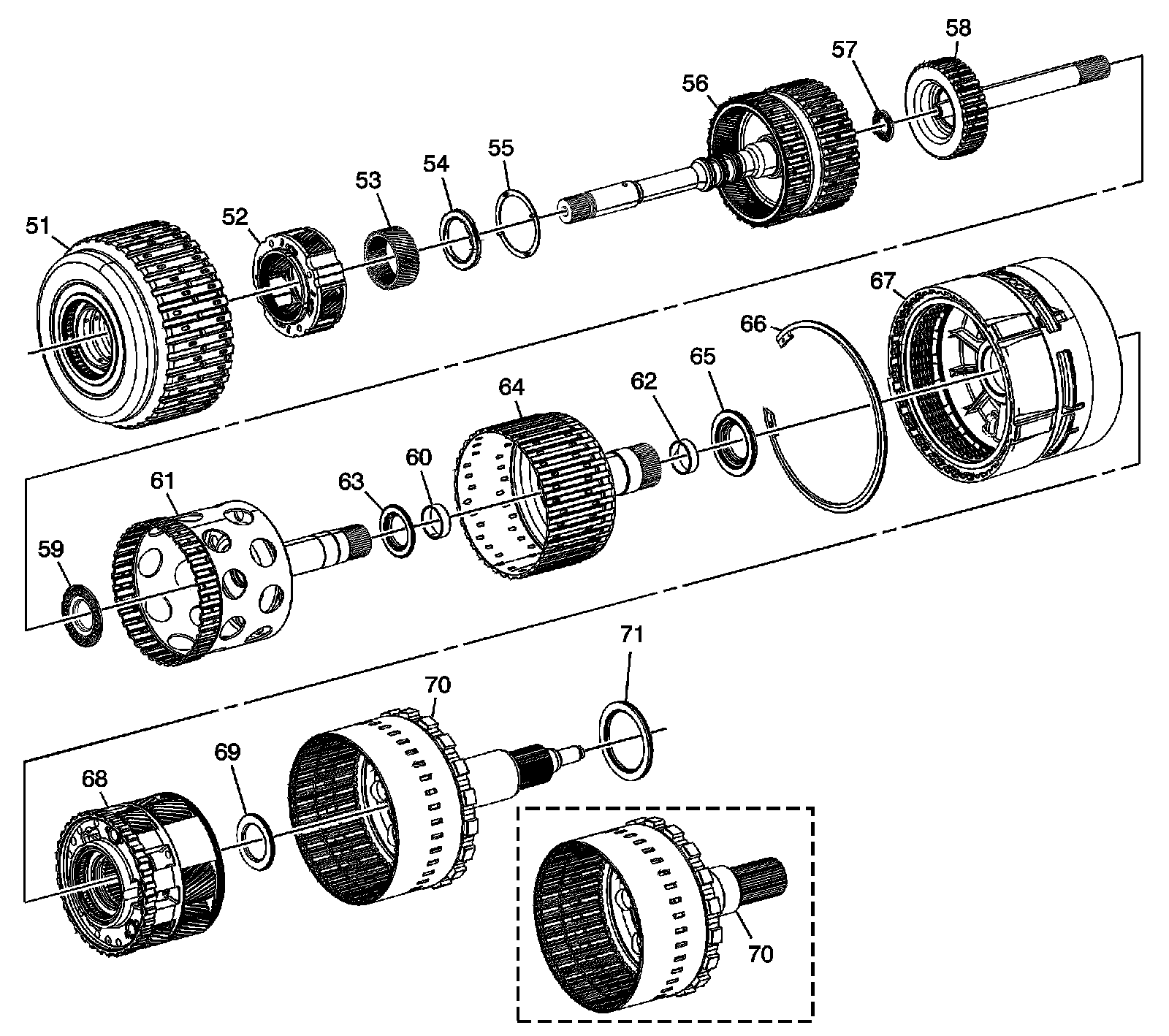 61 - 1-2-3-4 Clutch (w/ Output Carrier Inner Sun Gear Shaft) Hub Assembly