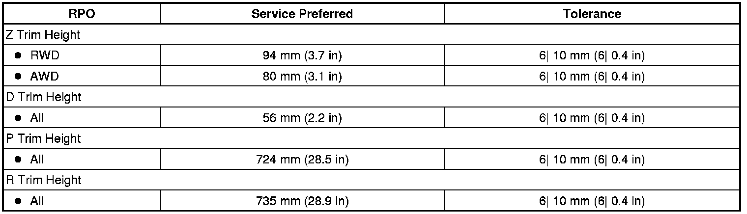 Trim Height Specifications