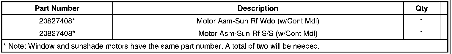 Replace both the sunroof window motor and the sunshade motor. Replacing both is necessary due to an internal software change in the motors. Refer to Sunroof Motor/Actuator Replacement and Sunroof Sunshade Motor/Actuator Replacement in SI.