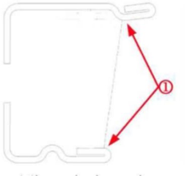 4. Adjust the window channel to a width of 16-16.5 mm (0.63-0.65 in) along the rear edge of the window patch by bending the inboard leg toward the center of the vehicle (1).