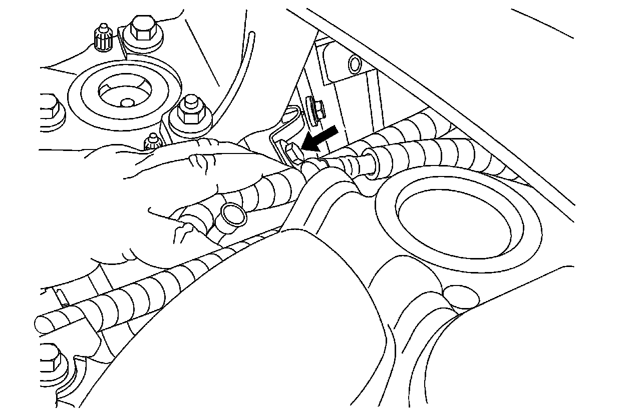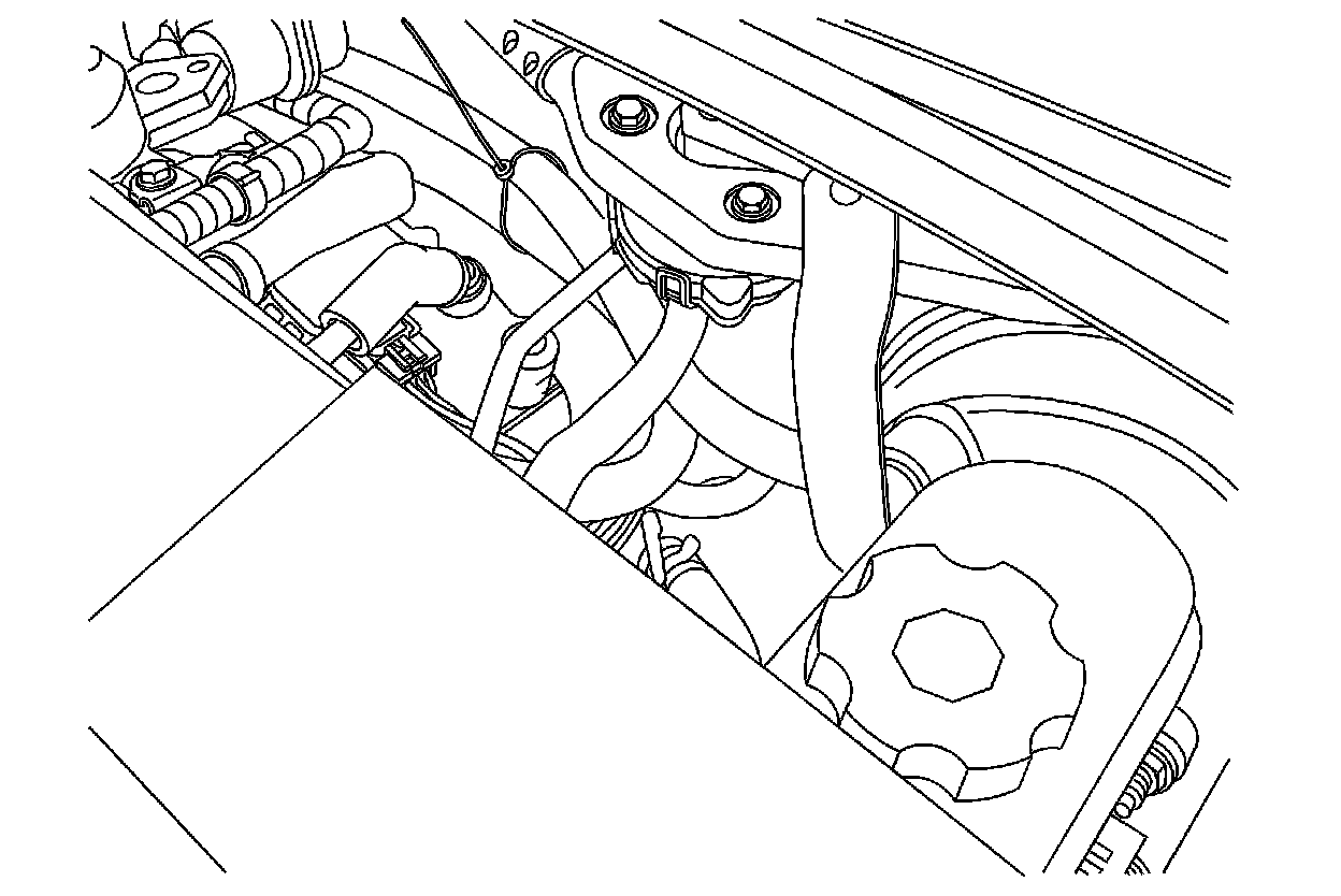 13. Route the hose behind the engine and connect it to the engine vacuum port, being careful not to kink the hose. Position the clamp to secure the hose.