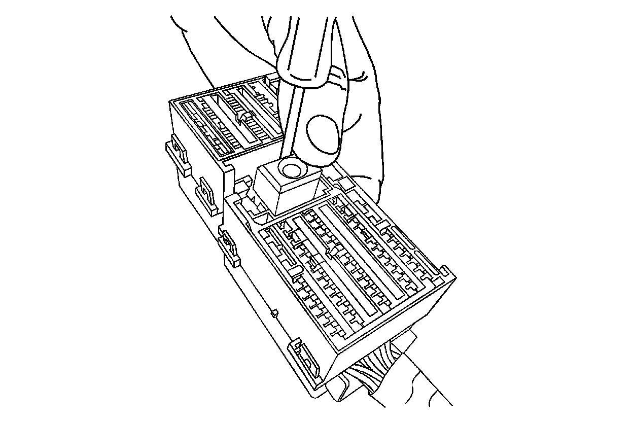 24. Remove the electrical center junction block by using a hook-shaped tool to disengage the locking tabs.