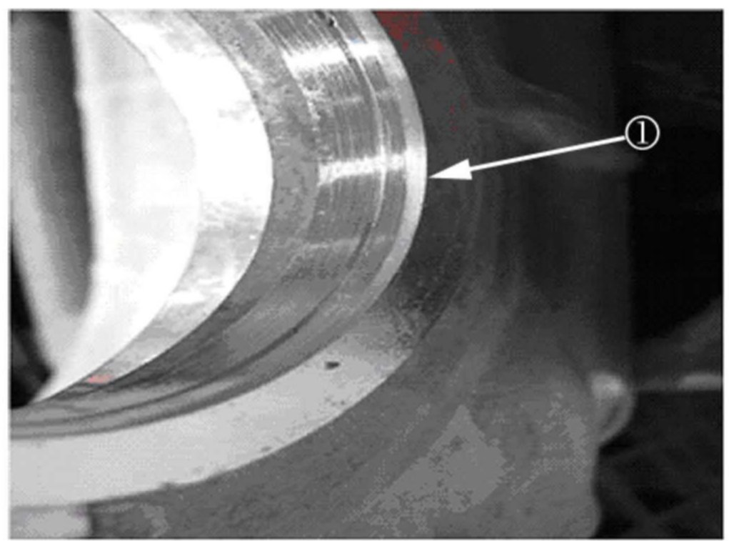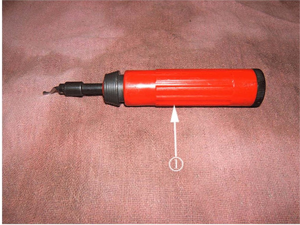 Visually inspect that all chips have been removed and that no burrs or sharp edges remain on the chamfer (1).