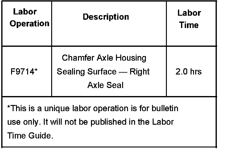 To obtain a proper chamfer for a good seal installation, deburr the right side axle housing seal bore using a standard deburring tool (1), such as DEBUR300 from Snap-On, EO1000 Edge Off from Noga, SHAVIV by Vargus or the equivalent.