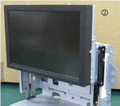 4. Using care, manually move the display from the lower position (1) to the upper most position (2).
