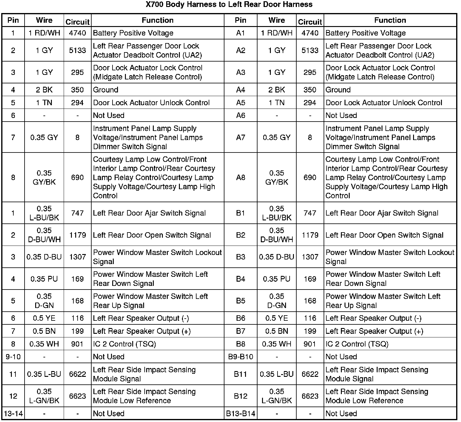 X700 Body Harness to Left Rear Door Harness