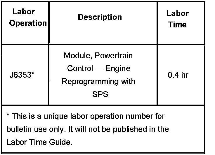 Refer to Service Programming System (SPS) using the appropriate Service Information (SI) procedures. Do not attempt to order the calibration number from GMSPO. The calibration numbers required for this service procedure are programmed into control modules via a Techline Tech 2(R) scan tool and the Techline Information System (TIS) 2000 terminal with the calibration update.