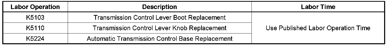 Choose the appropriate labor operation based on the part being replaced. DO NOT use Labor Operation K5225 (Control Assembly, Floor Shift - Replace).