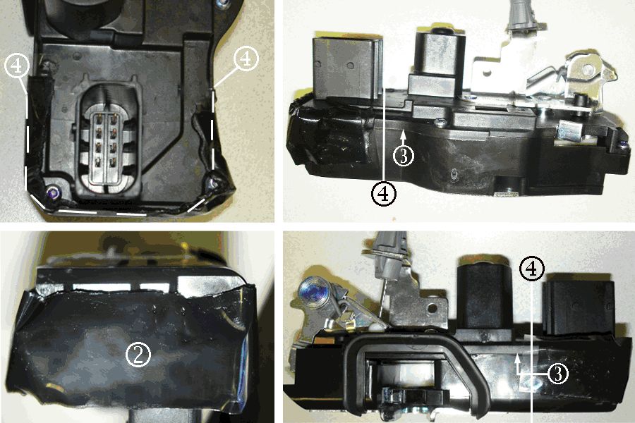 Starting point (connector area) of where to apply the mastic material to the side of the latch.