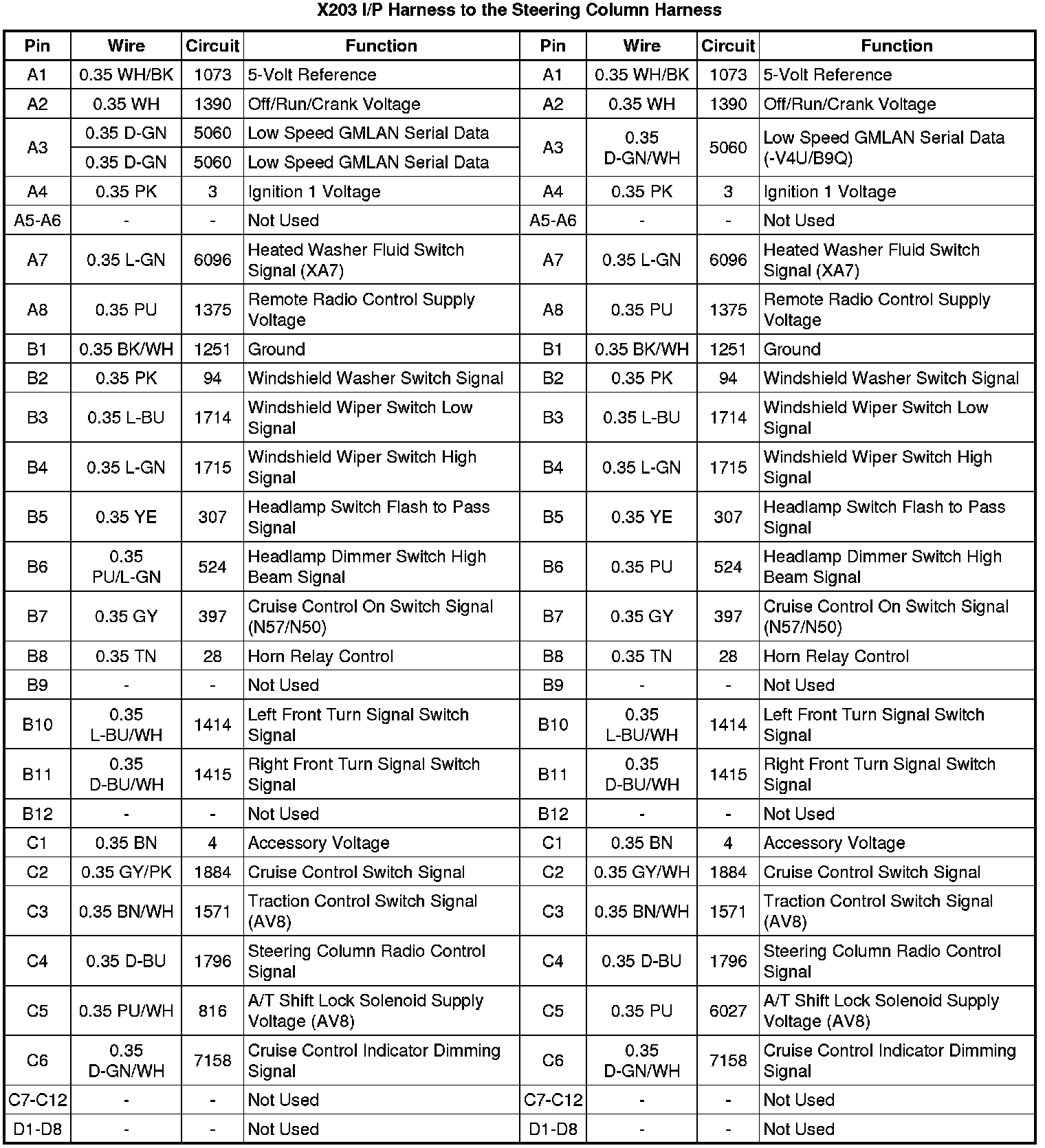 X203 I/P Harness to the Steering Column Harness