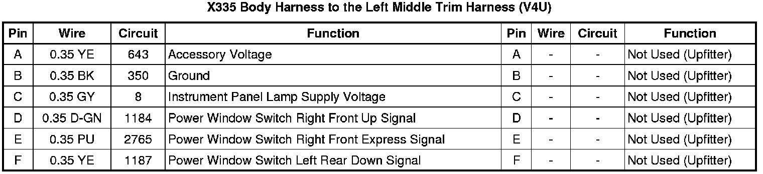 X335 Body Harness to the Left Middle Trim Harness (V4U)