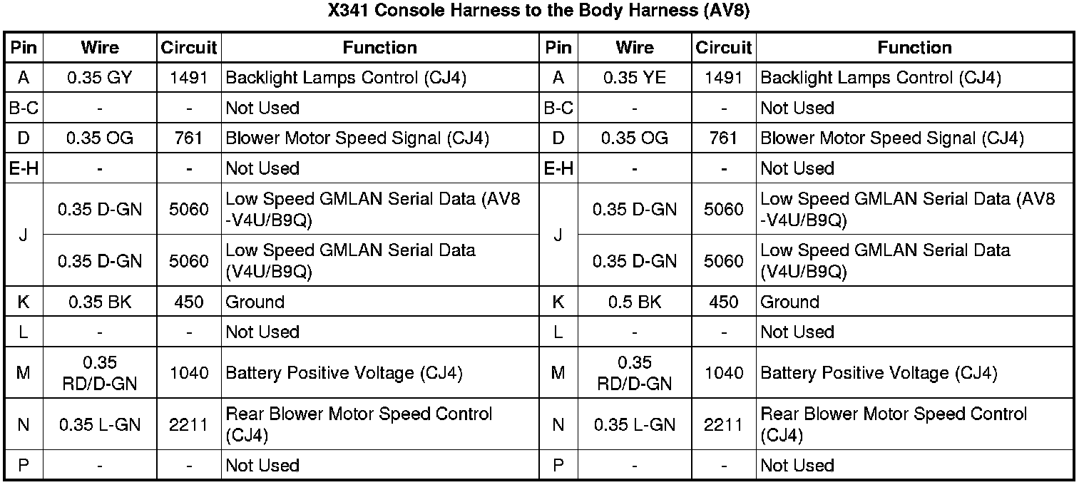 X341 Console Harness to the Body Harness (AV8)