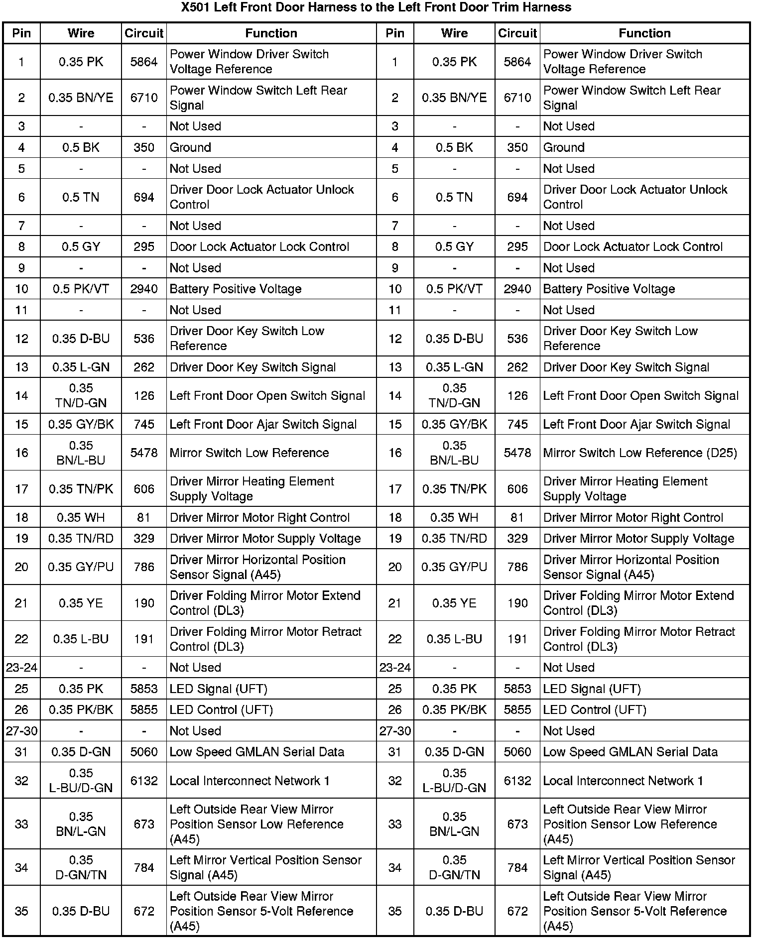 X501 Left Front Door Harness to the Left Front Door Trim Harness